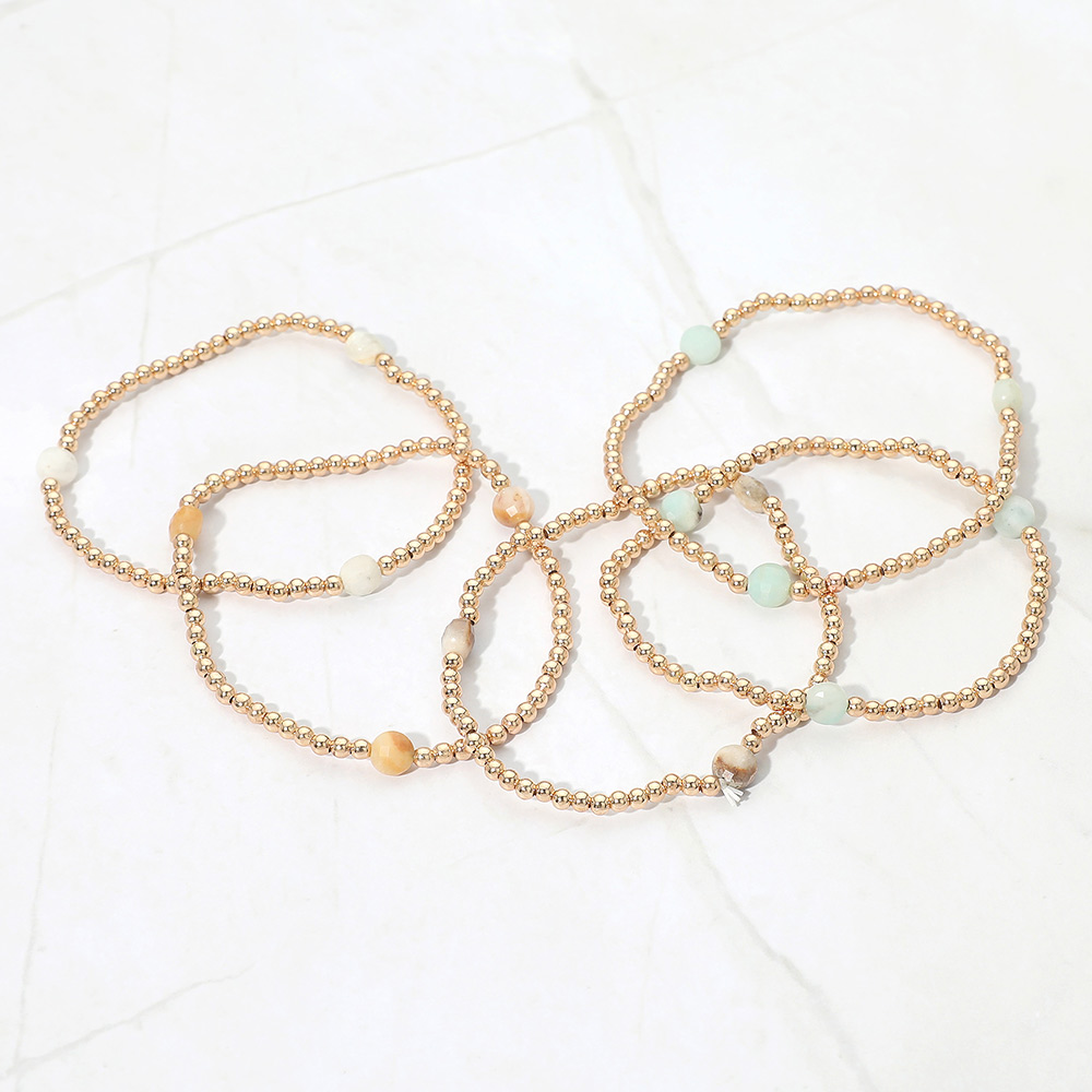 Details • Size : 1.25" H • Stretchable • This multi strand stretch bracelet set features layered beaded designs accented with smooth round details for a refined, everyday look. Easy to wear and stack, it offers a balanced blend of texture and simplicity, making it ideal for daily styling, gifting, or boutique accessory collections. • Lead and Nickel Compliant