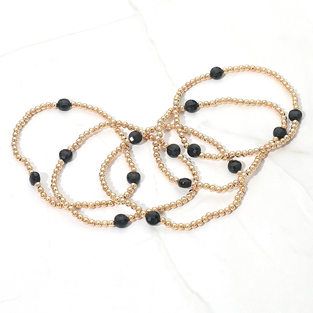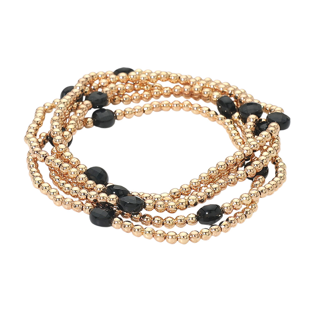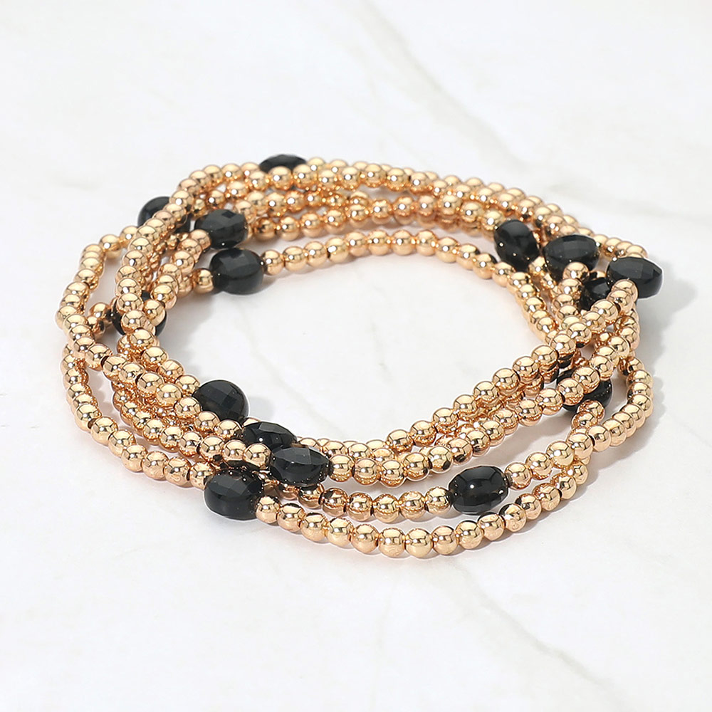 4PCS - Faceted Beads Station Metal Ball Stretch Multi Layered Bracelets