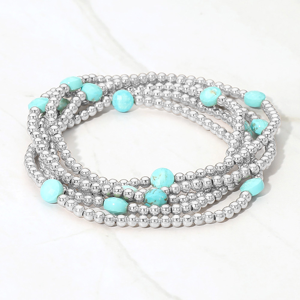 • This multi strand stretch bracelet set features layered beaded designs accented with smooth round details for a refined, everyday look. Easy to wear and stack, it offers a balanced blend of texture and simplicity, making it ideal for daily styling, gifting, or boutique accessory collections.
