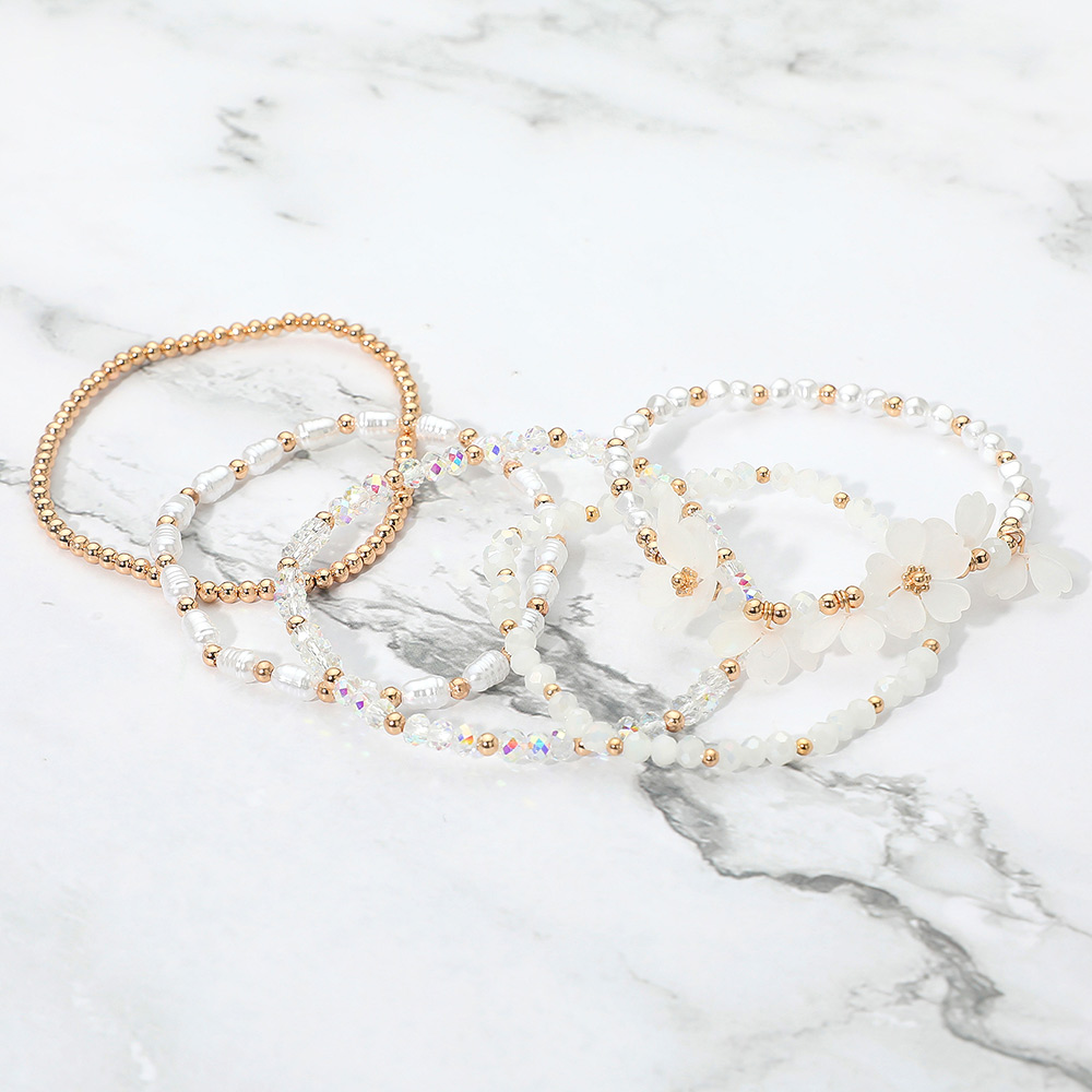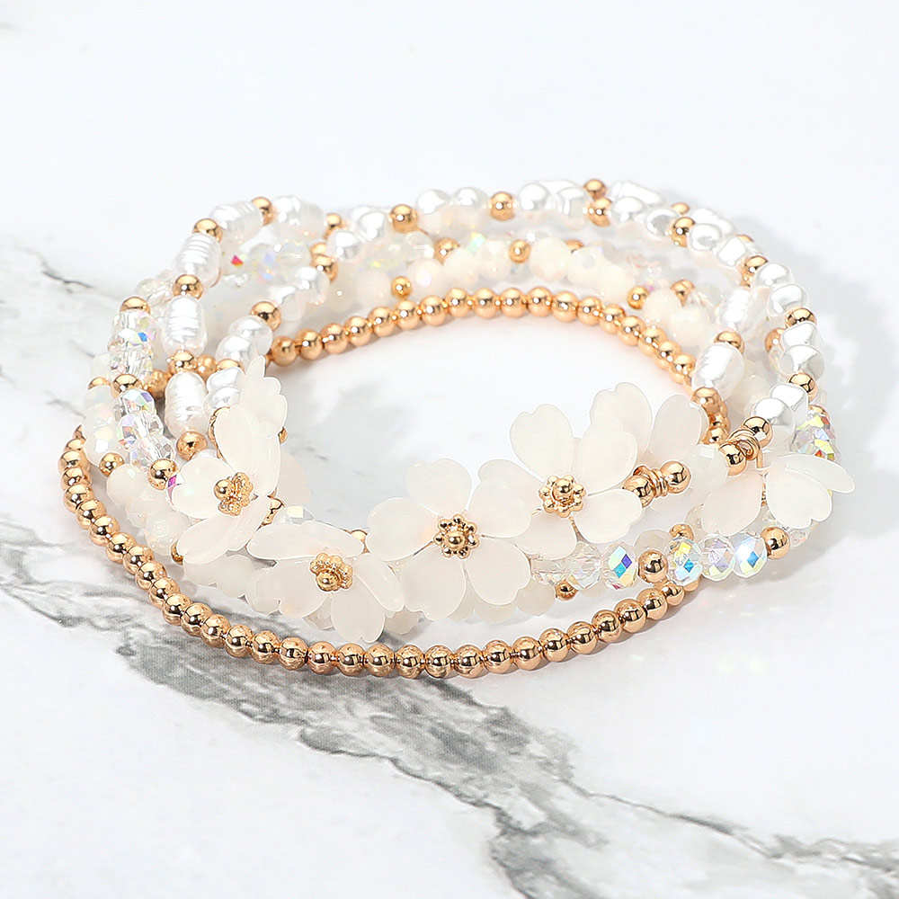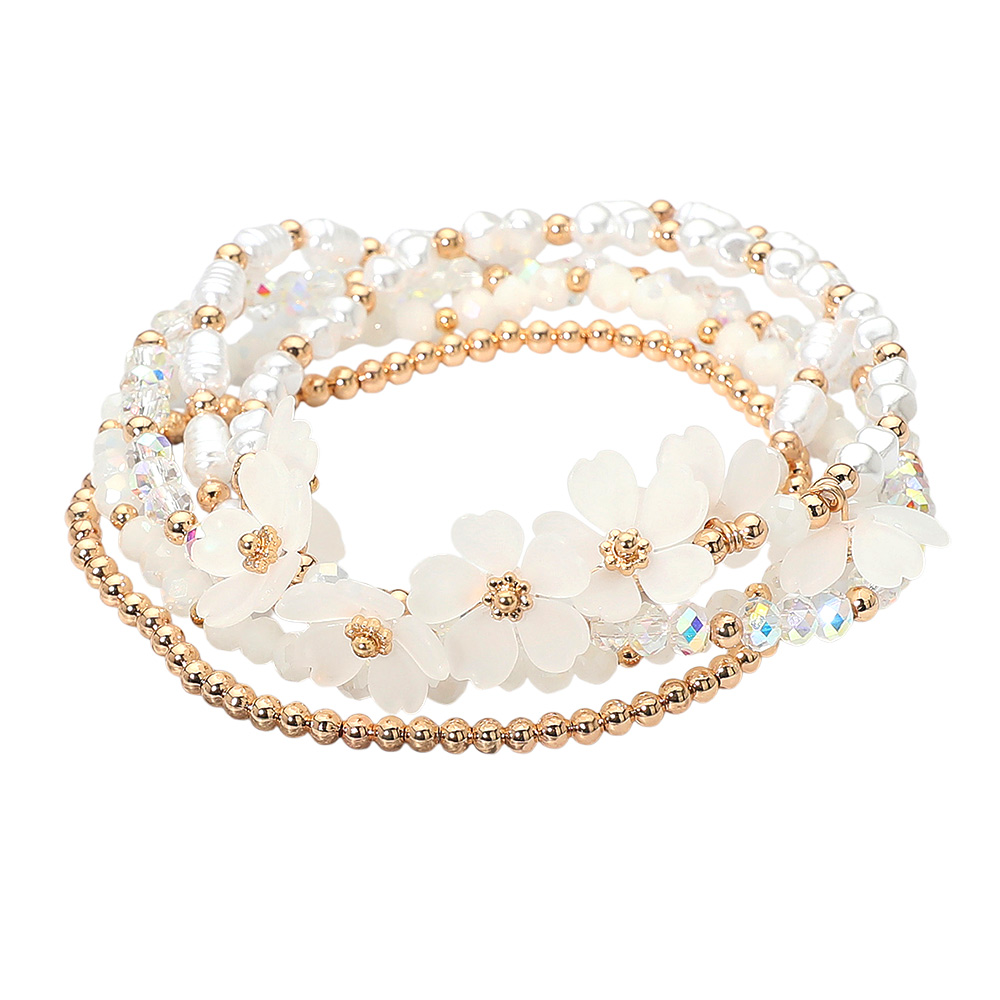 Details • Size : 1.25" H • Stretchable • Brighten your wrist with this beaded floral stretch bracelet set featuring layered strands of faceted beads, metallic accents, and delicate flower charms. Designed for easy wear and versatile styling, this chic bracelet set adds a touch of elegance to casual outfits and dressy ensembles alike. • Lead and Nickel Compliant