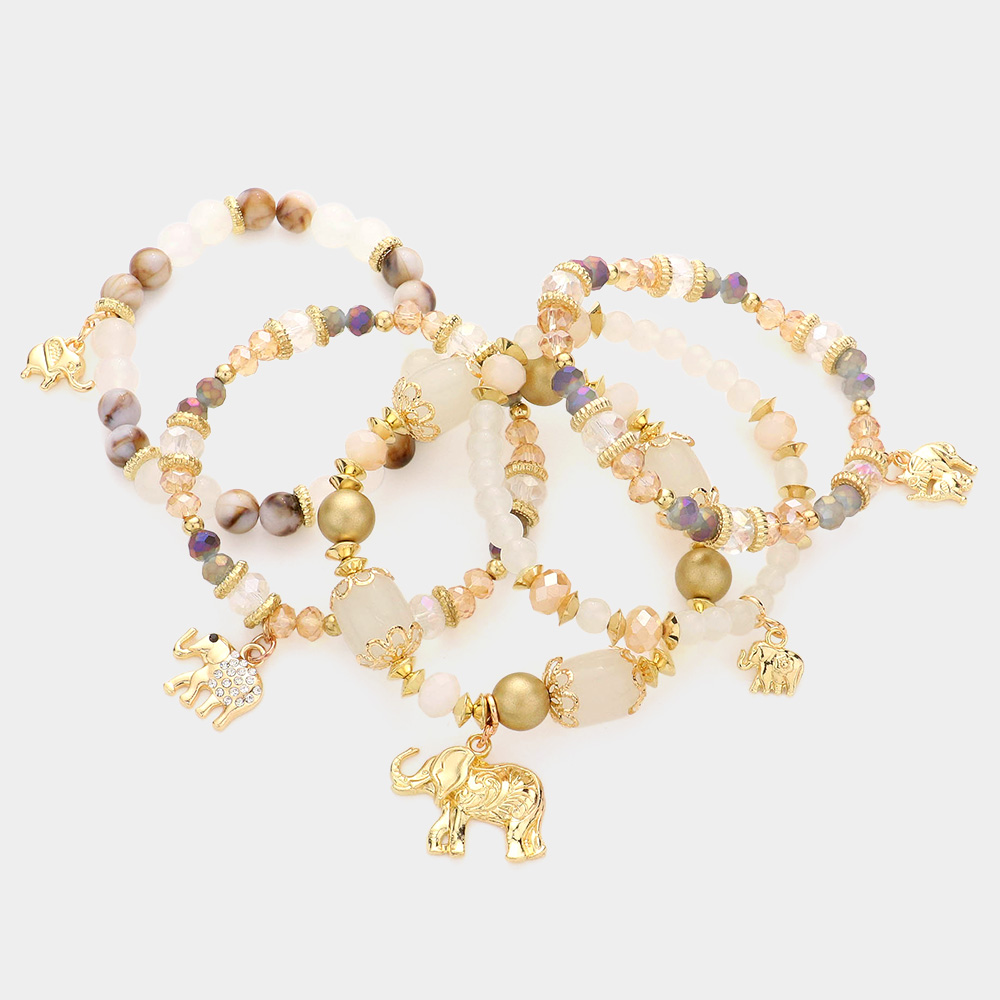 5PCS - Metal Elephant Charm Multi Beaded Stretch Bracelets