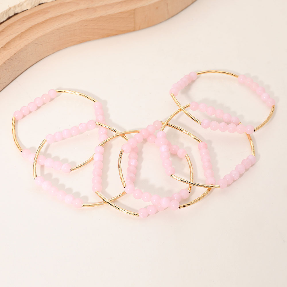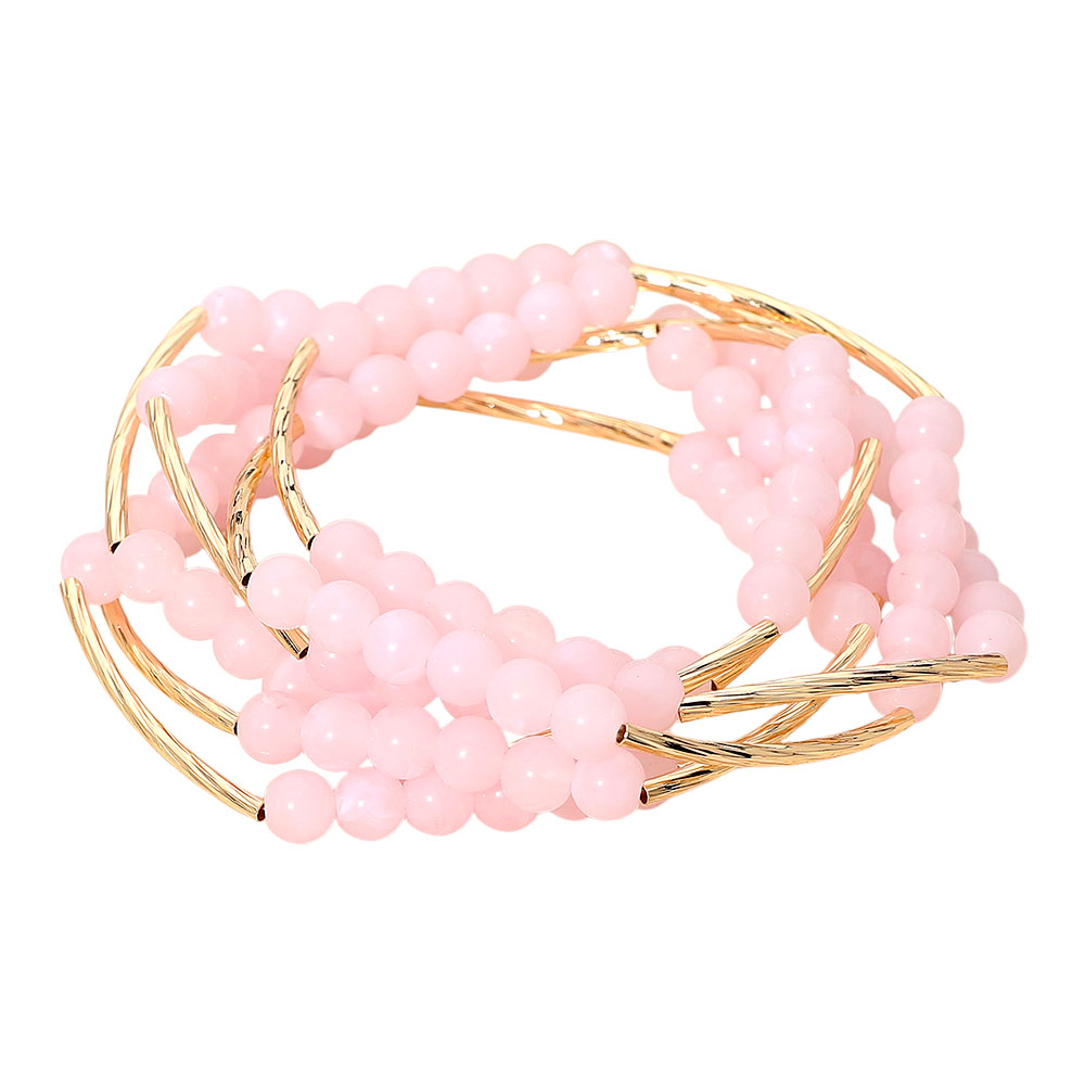 5PCS -Round Ball Curved Textured Bar Beaded Stretch Multi Layered Bracelets