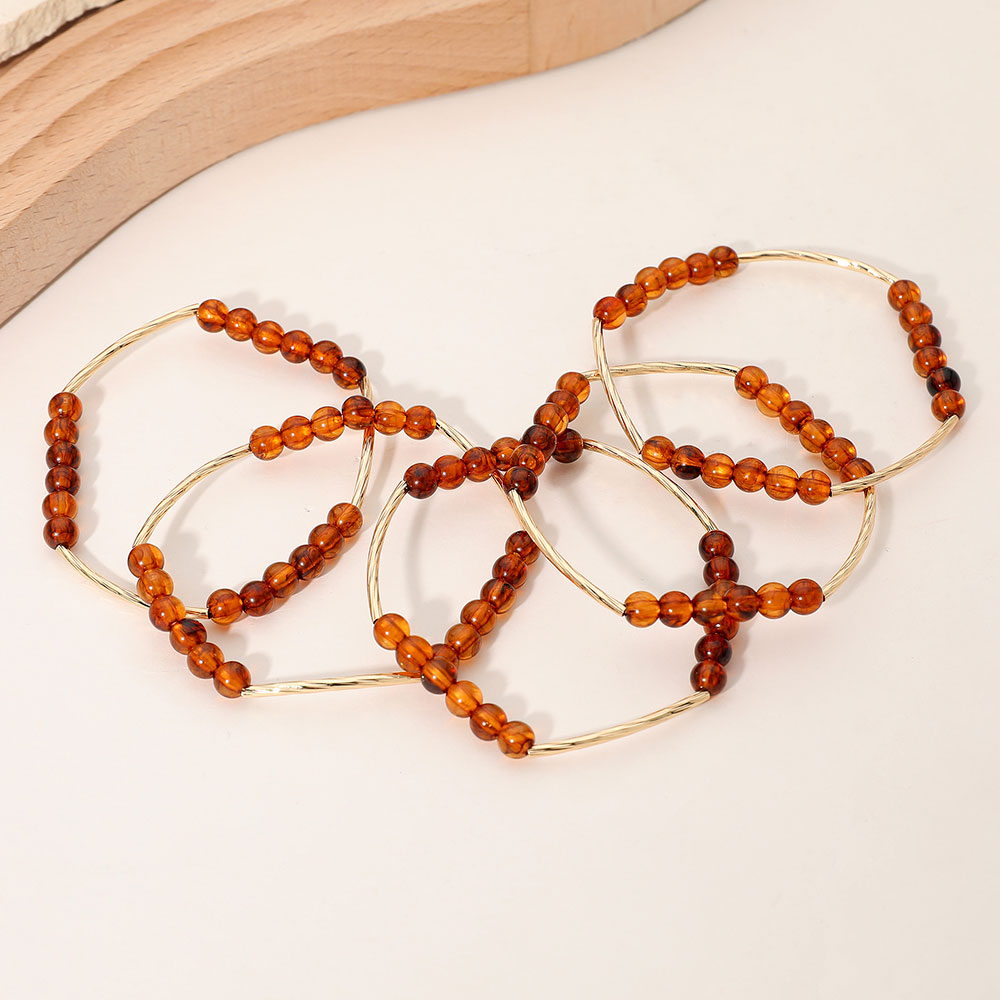 5PCS -Round Ball Curved Textured Bar Beaded Stretch Multi Layered Bracelets