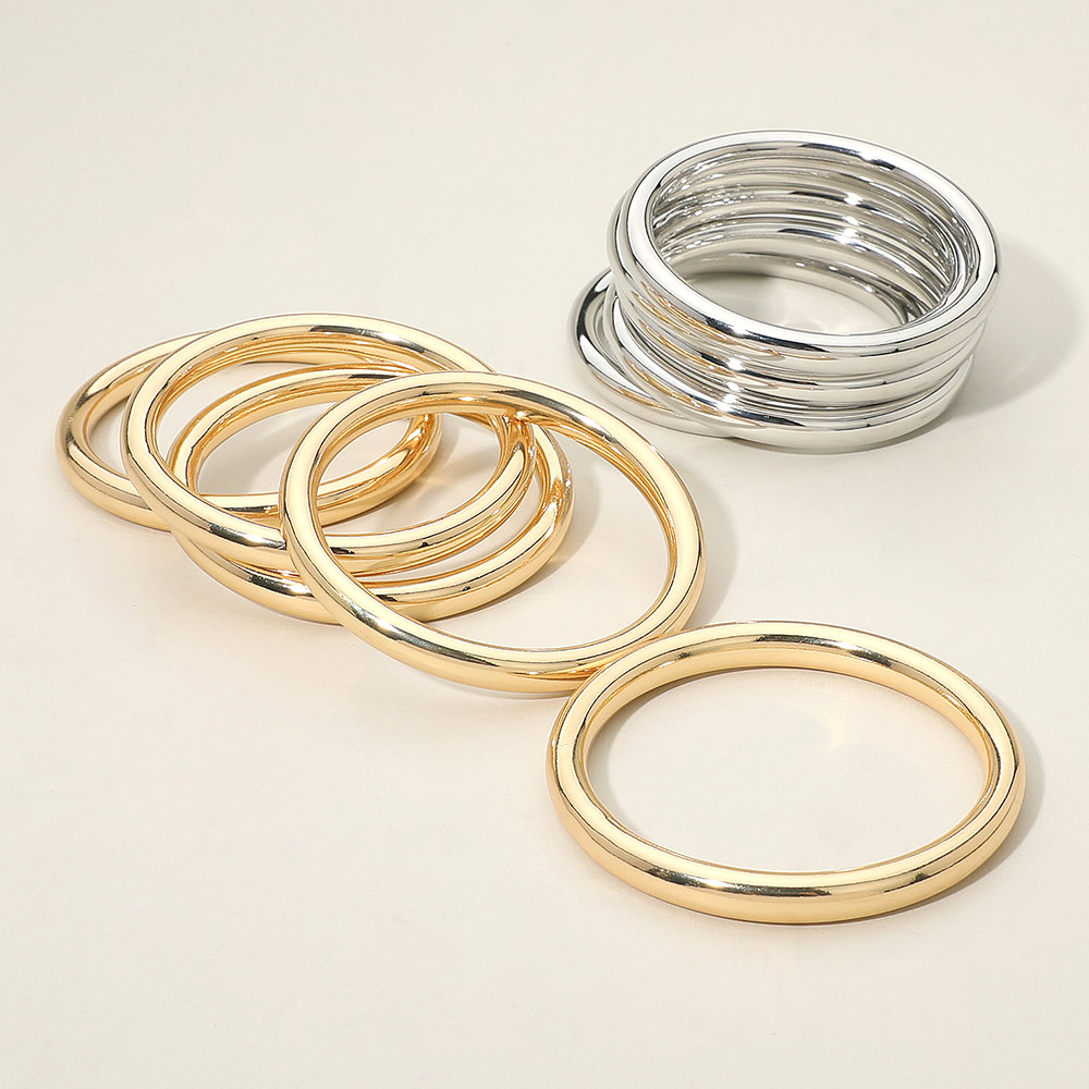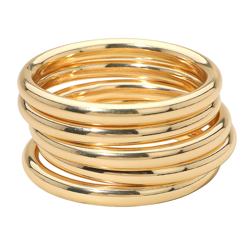 5PCS - Stackable Polished Metal Multi Layered Bangle Bracelets