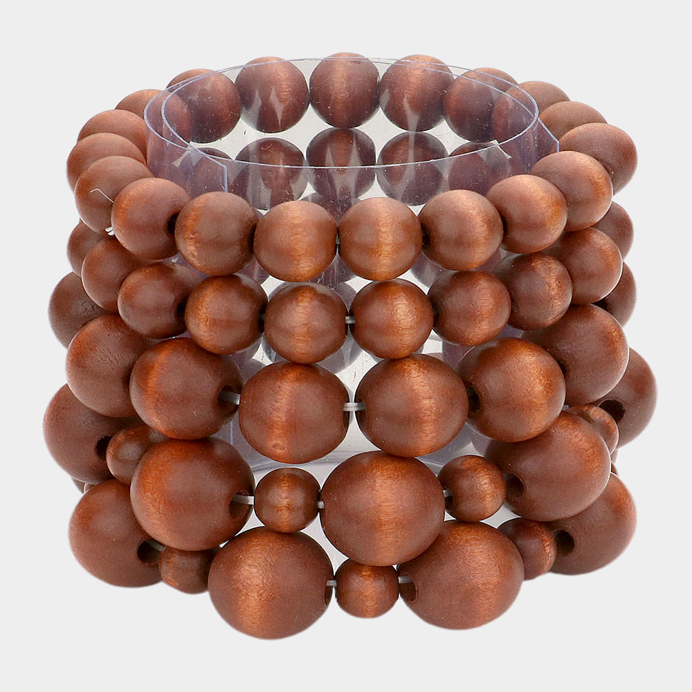Wooden Textured Metal Resin Ball Beaded Stretch Bracelet