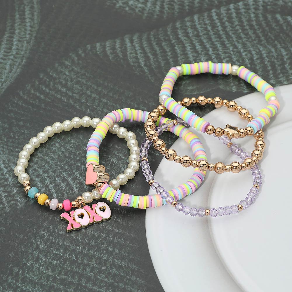 Details • Size : 2" H • Stretchable • Fun and expressive stretch bracelet set featuring mixed bead styles and a playful XOXO charm accent. Designed for easy stacking and comfortable wear, this multi-piece set adds personality to casual looks, gifting moments, themed collections, and everyday accessory displays while appealing to trend-focused shoppers. • Lead and Nickel Compliant
