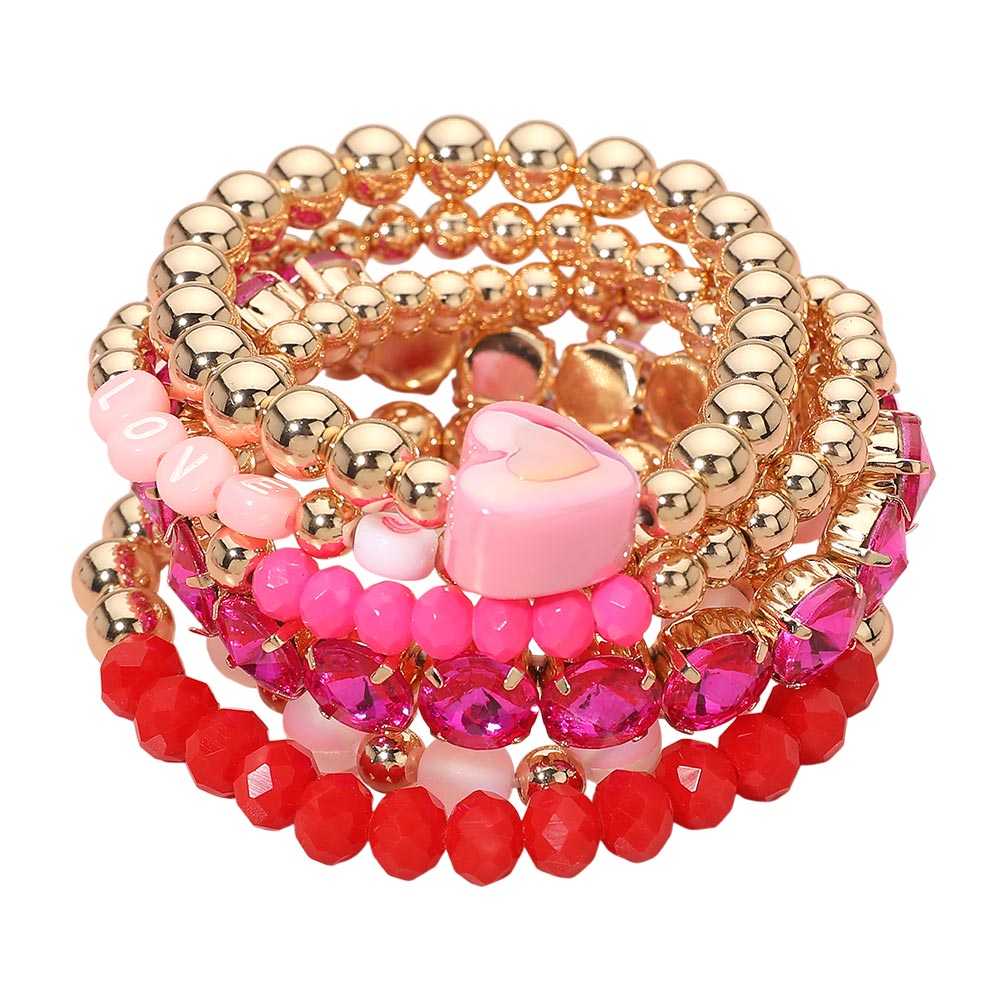 Details • Size : 2.1" H • Stretchable • This heart charm beaded stretch bracelet set features multiple coordinating designs with polished round beads, decorative accents, and playful heart details. Created for comfortable stretch wear, each bracelet can be worn alone or stacked together for a layered look that adds charm, versatility, and gift-ready appeal to everyday accessory collections. • Lead and Nickel Compliant
