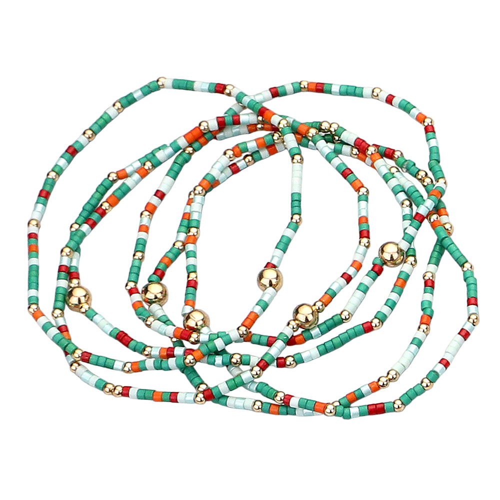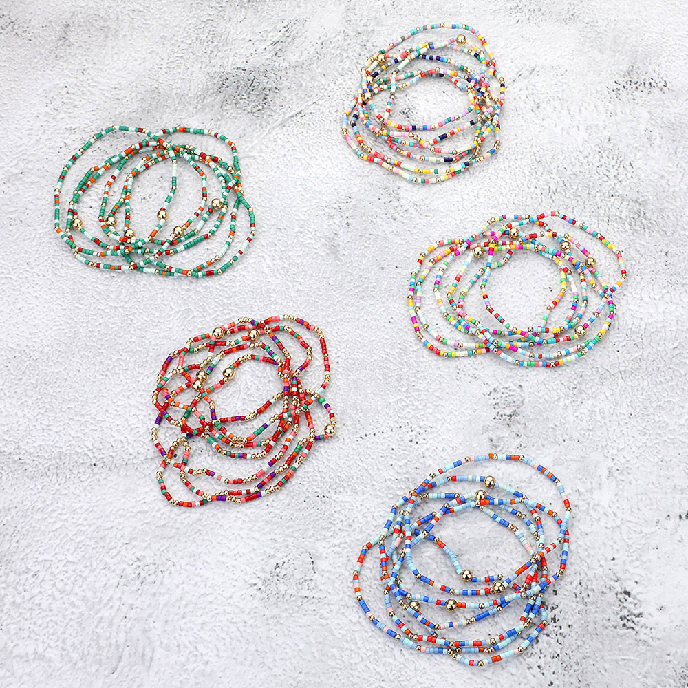 6PCS - Seed Beaded Stretch Multi Layered Bracelets