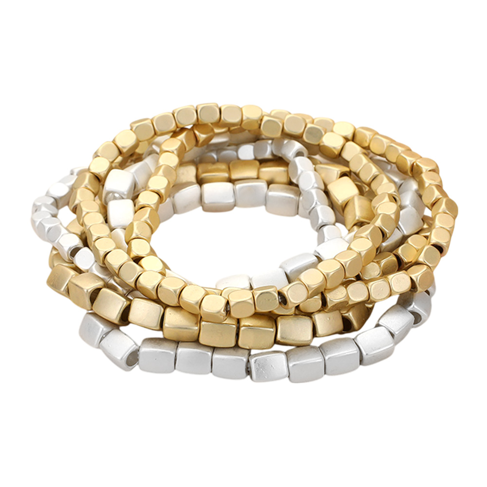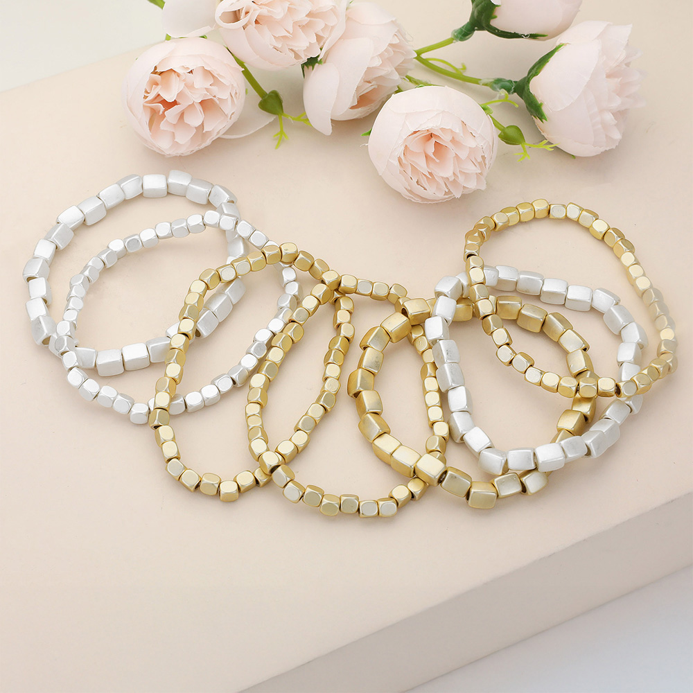 7 PCS - Metal Bead Stack Stretch Multi Layered Bracelets