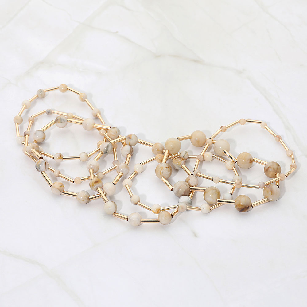 7PCS - Resin Ball Metal Bar Beaded Stretch Multi Layered Bracelets 7PCS - Resin Ball Metal Bar Beaded Stretch Multi Layered Bracelets 7PCS - Resin Ball Metal Bar Beaded Stretch Multi Layered Bracelets