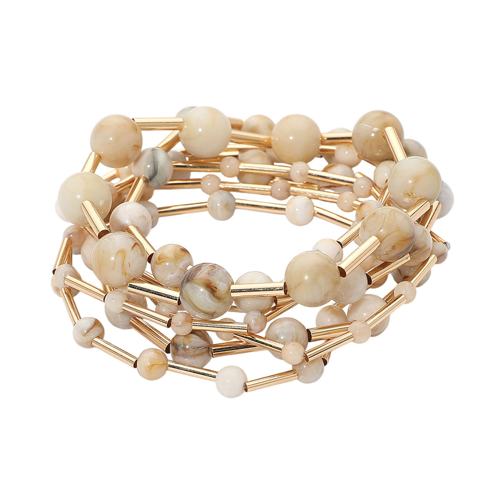 7PCS - Resin Ball Metal Bar Beaded Stretch Multi Layered Bracelets
