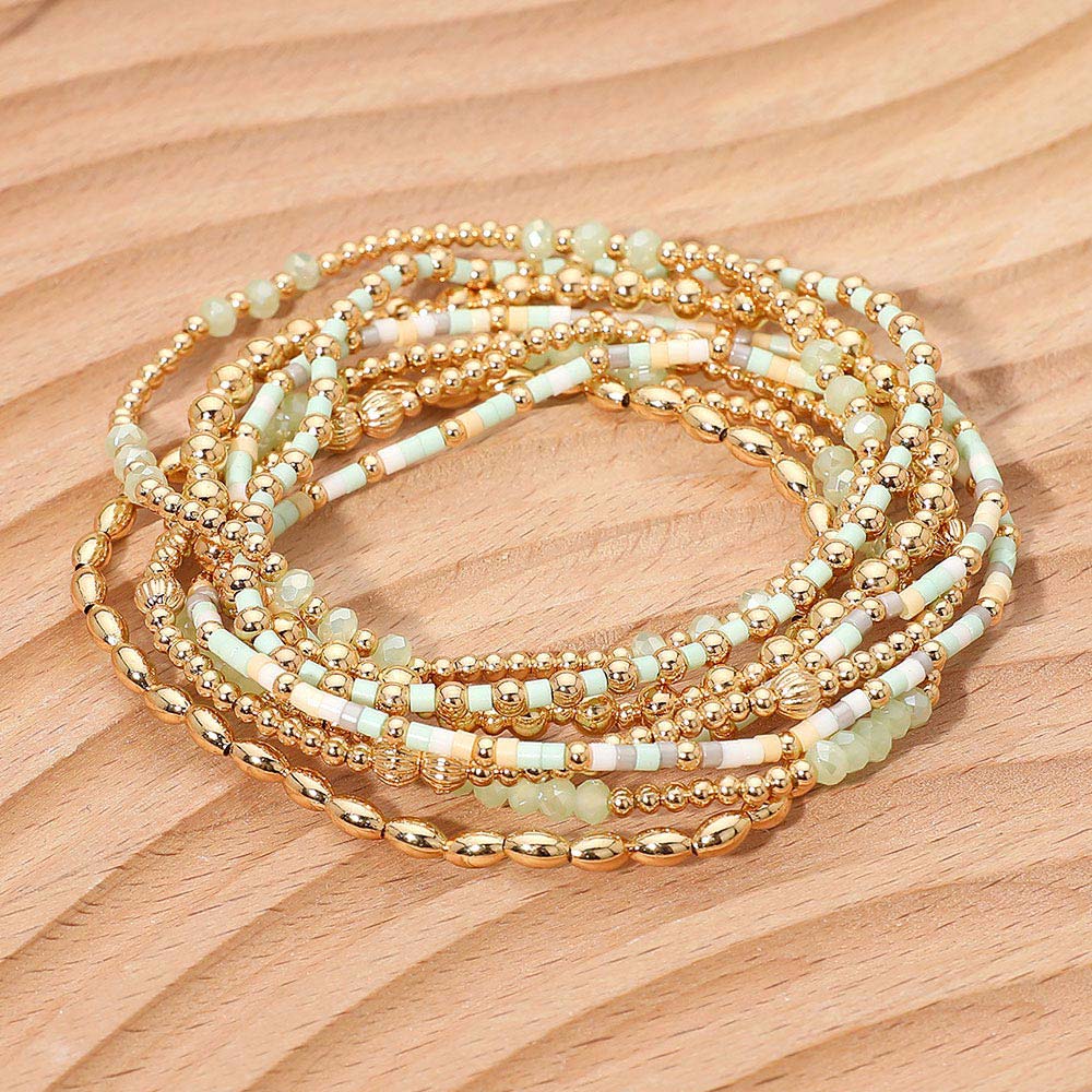 8PCS - Seed Beaded Stretch Multi Layered Bracelets