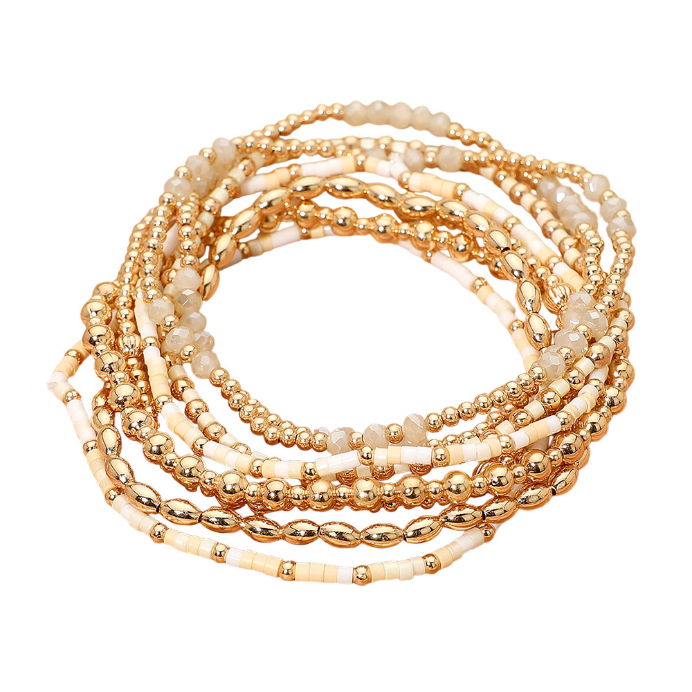8PCS - Seed Beaded Stretch Multi Layered Bracelets