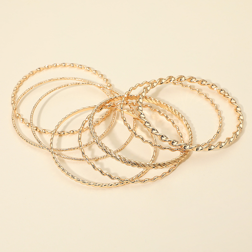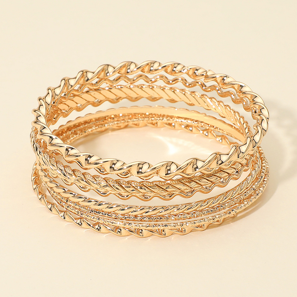 Details • Size : 1" H, 2.7" D • Fashionable stacked bangle bracelet set featuring a mix of textured and twisted bands for a stylish layered look. A chic accessory that adds dimension and flair to everyday and dressy outfits, perfect for elevating any jewelry collection. • Lead and Nickel Compliant