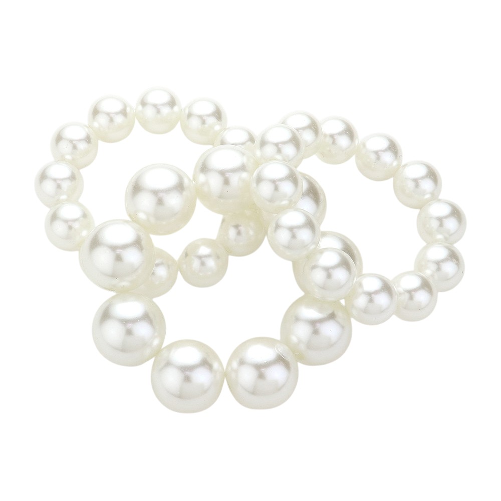 Details • Size : 2.25" H • Stretchable • Stylish wide stretch bracelet with triple rows of round pearl-like beads. Classic design that enhances formal outfits, parties, weddings, or everyday fashion with timeless elegance. • Lead and Nickel Compliant