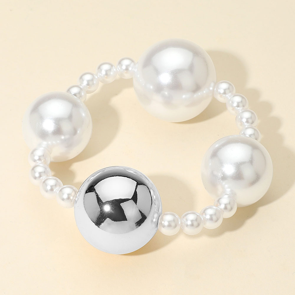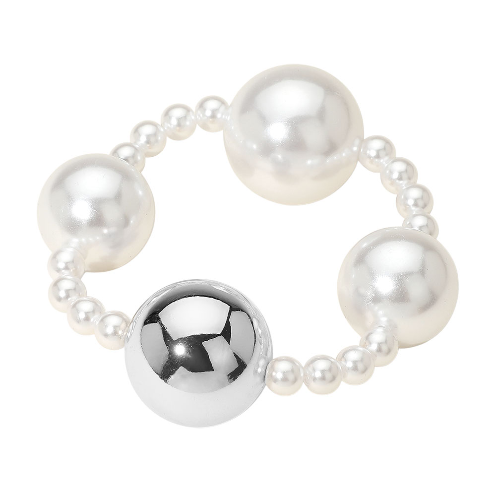 Alternating Metal Pearl Beaded Stretch Statement Bracelet