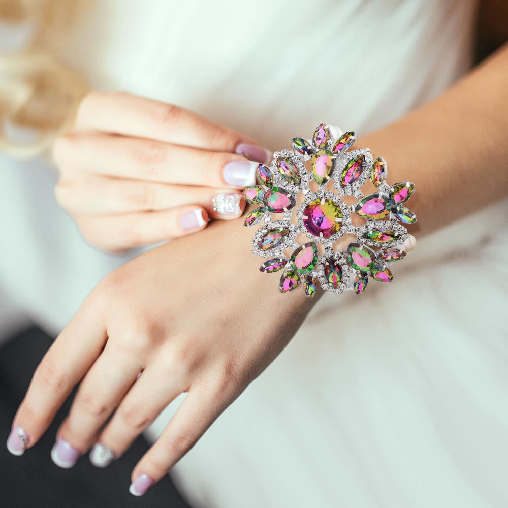 Glass Crystal Teardrop Floral Stretch Evening Bracelet