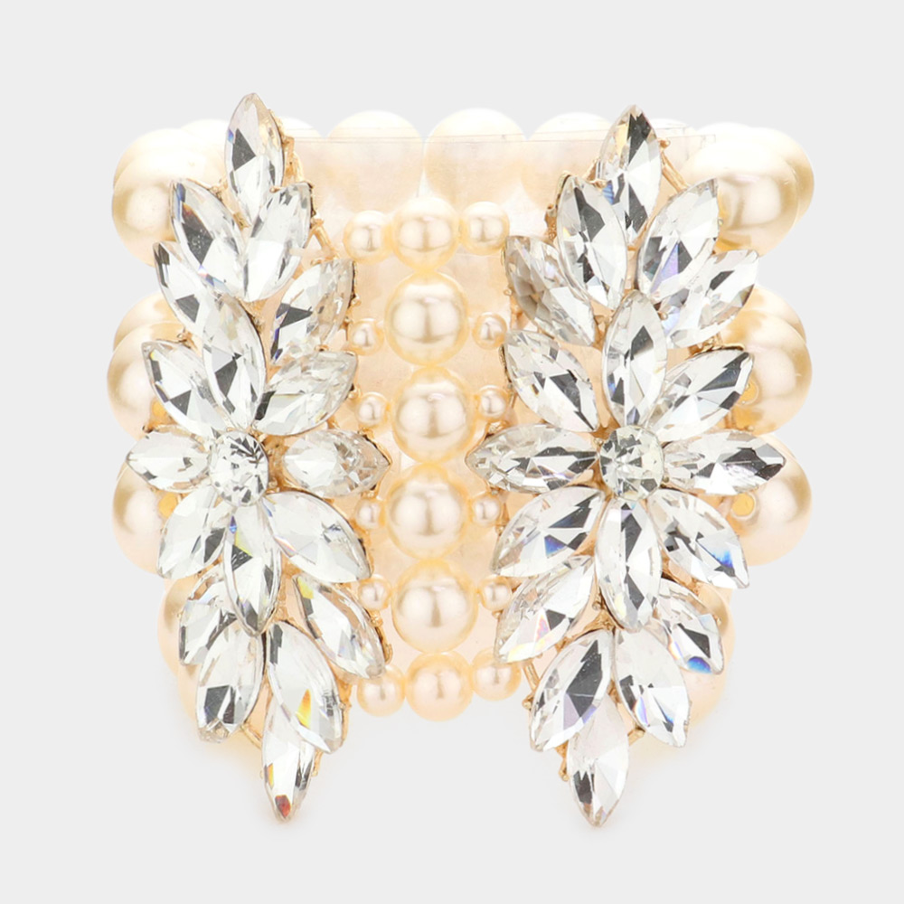 Stone Embellished Multi Layered Pearl Stretch Bracelet