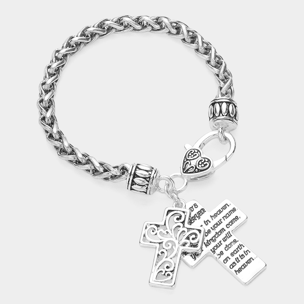 Lord's Prayer Message Antique Cross Charm Bracelet