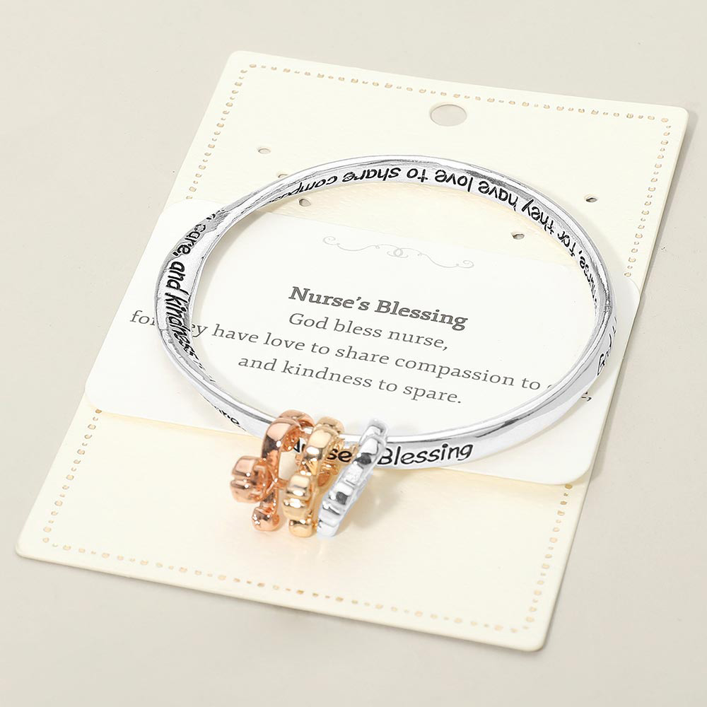 Details • Size : 0.75" H, 2.5" D • Celebrate care and compassion with this Nurse’s Blessing engraved inspirational bangle bracelet featuring a heartfelt message and charming accents. A thoughtful gift for nurses, graduates, or everyday encouragement, perfect for honoring dedication and kindness in a meaningful, wearable way. • Lead and Nickel Compliant