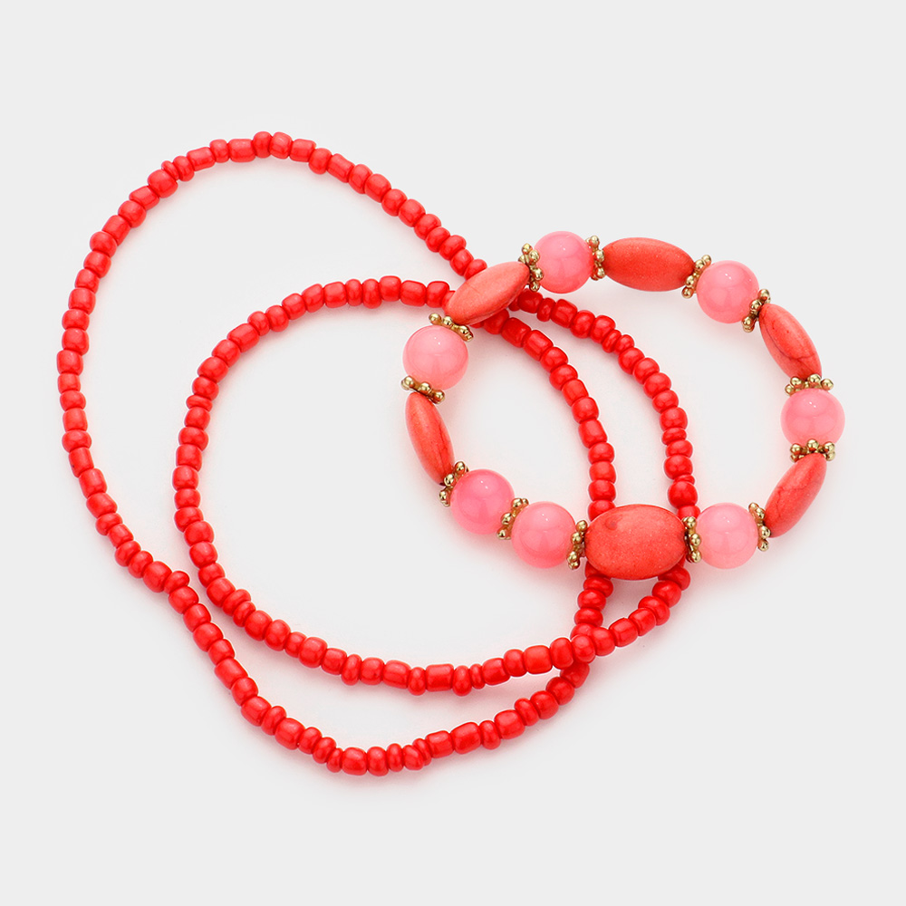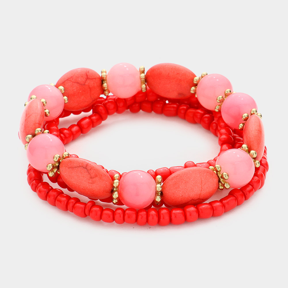 3PCS - Faceted Tube Beaded Stretch Multi Layered Bracelets