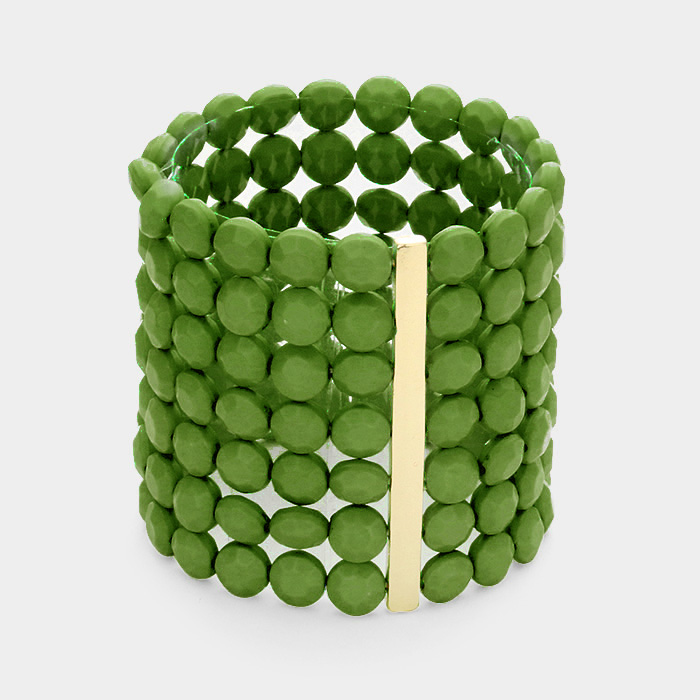 7Rows Wide Faceted Round Beaded Stretch Bracelet