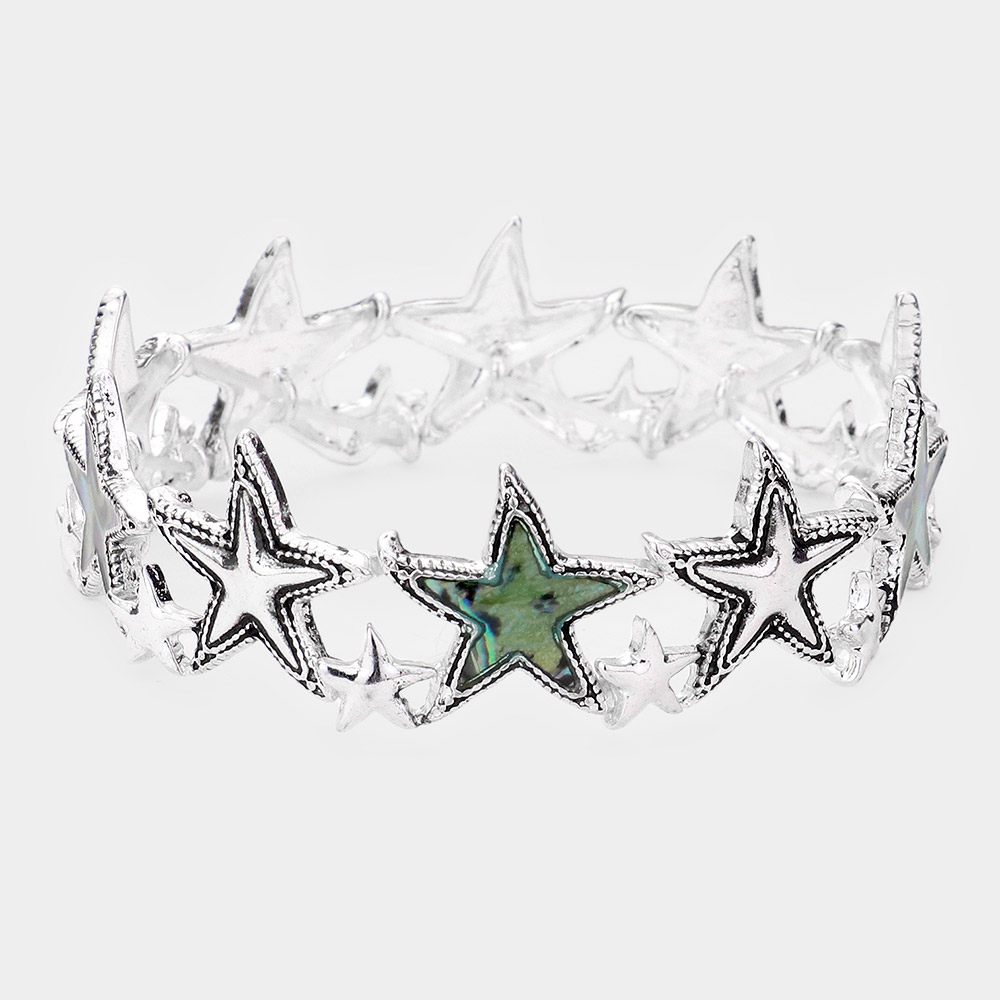 Abalone Metal Starfish Stretch Bracelet