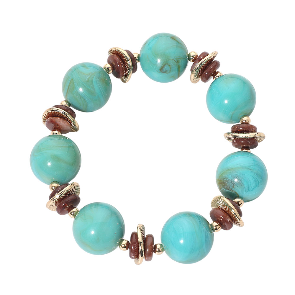 Abstract Marbled Resin Ball Beaded Stretch Bracelet