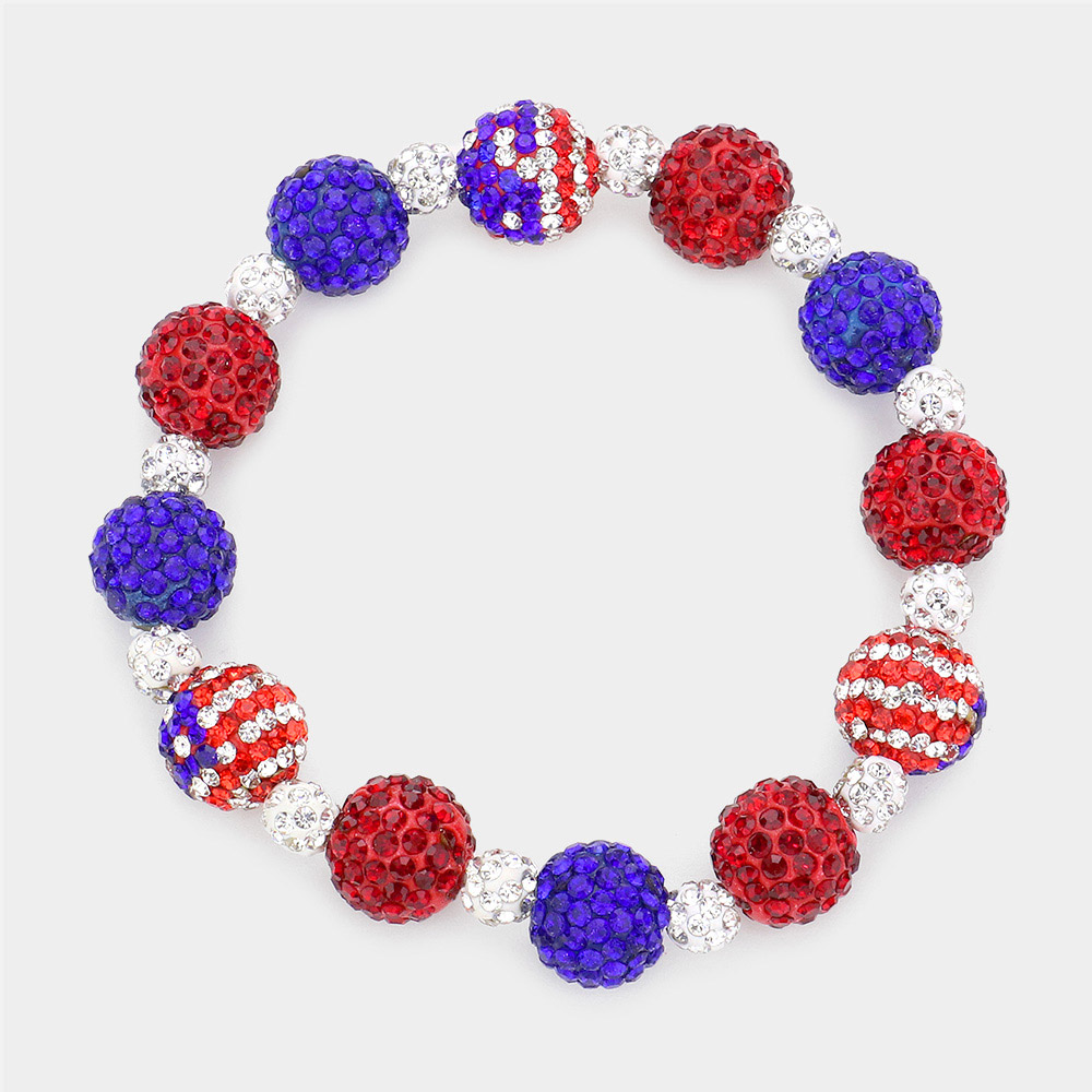 12PCS - Kids Enamel American USA Flag Charm Beaded Stretch Bracelets