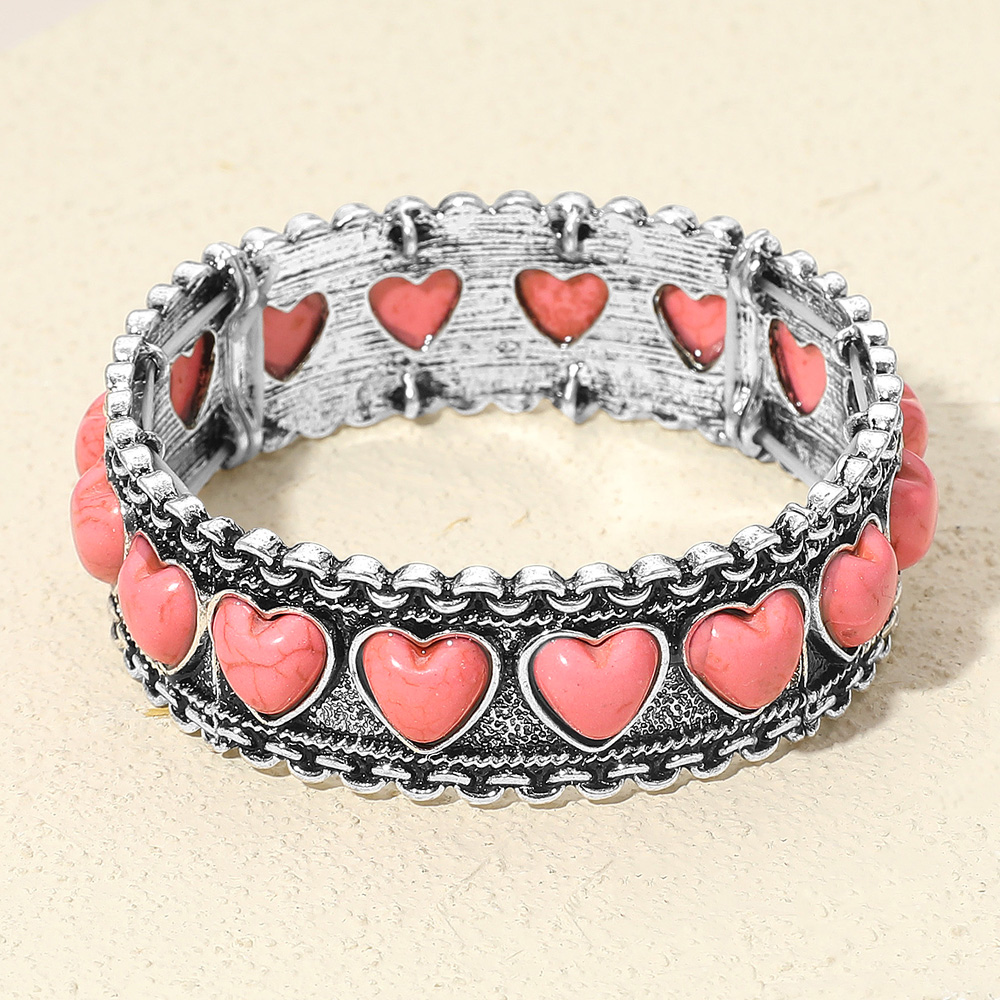 Antique Metal Boho Heart Stone Accent Stretch Bracelet