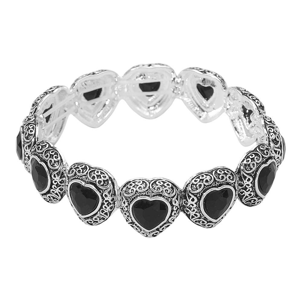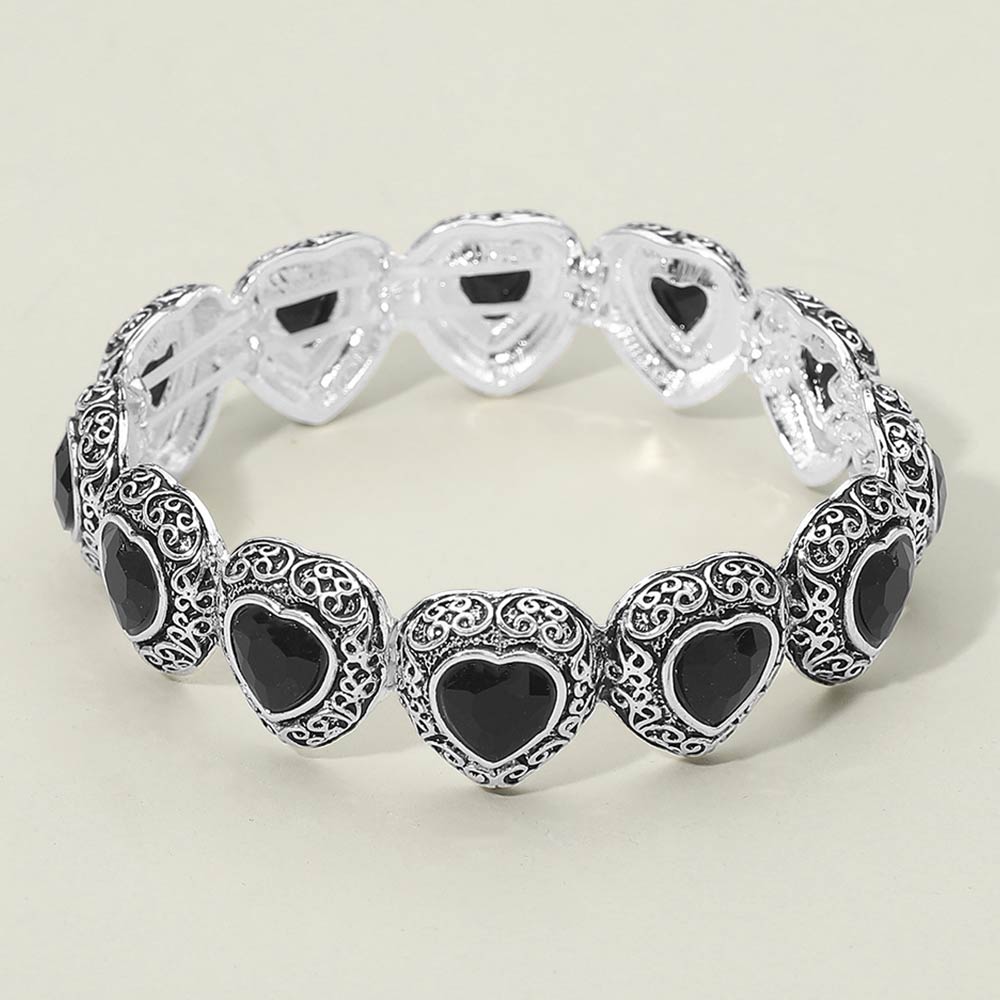Antique Metal Boho Heart Stone Accent Stretch Bracelet