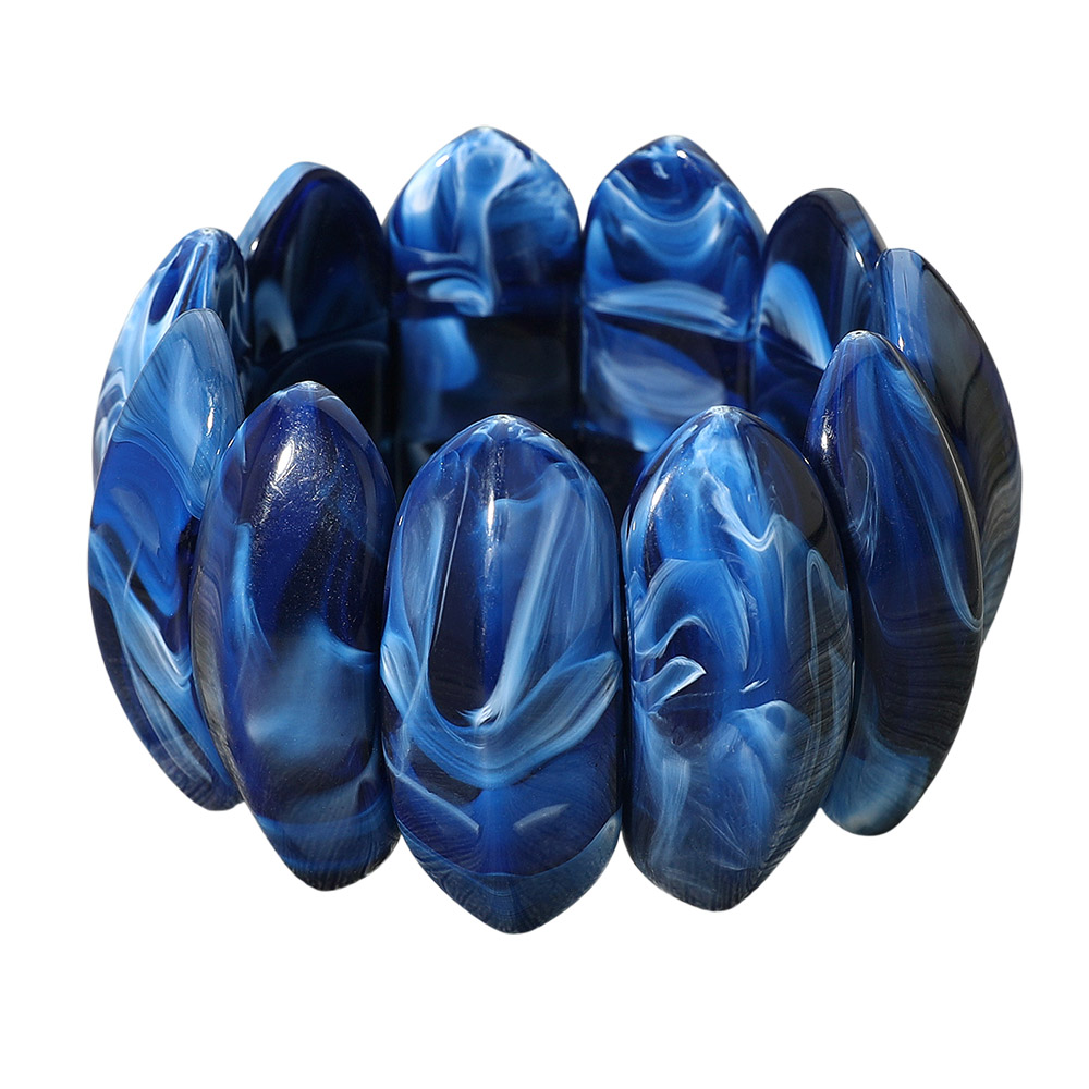 • Elevate your look with this marbled stretch bracelet featuring pointed oval panels for a chic and contemporary vibe. Its bold design and flexible fit make it perfect for stacking or wearing solo as a statement piece, adding versatile style to both casual and dressy outfits.