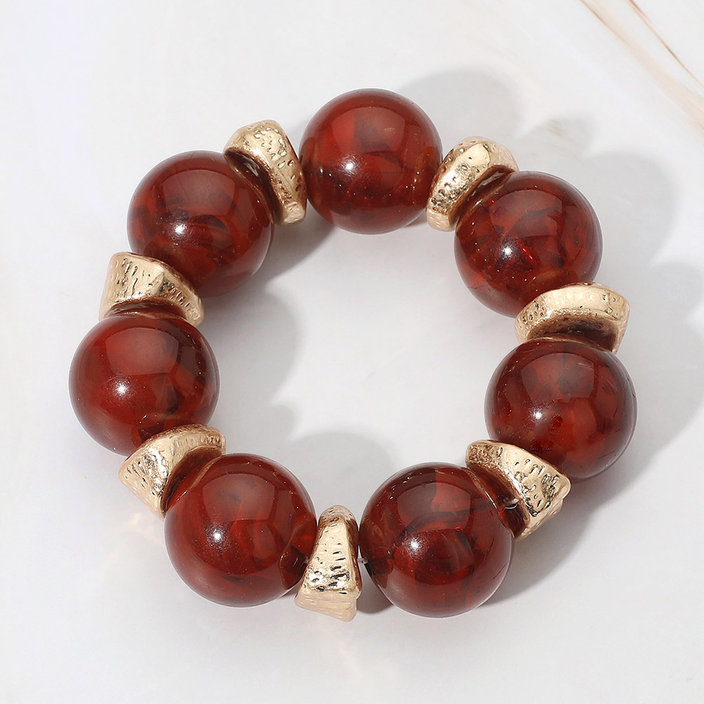 • This chunky stretch bracelet showcases rich round beads accented with textured metallic spacers for a bold, artistic look. Effortlessly stylish and comfortable to wear, it adds a touch of modern sophistication to both everyday outfits and statement ensembles.