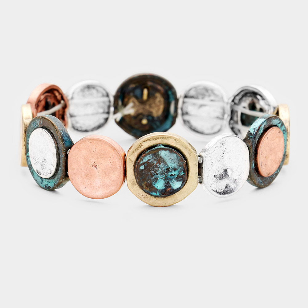 Wooden Clasp Natural Beaded Wide Stretch Bracelet
