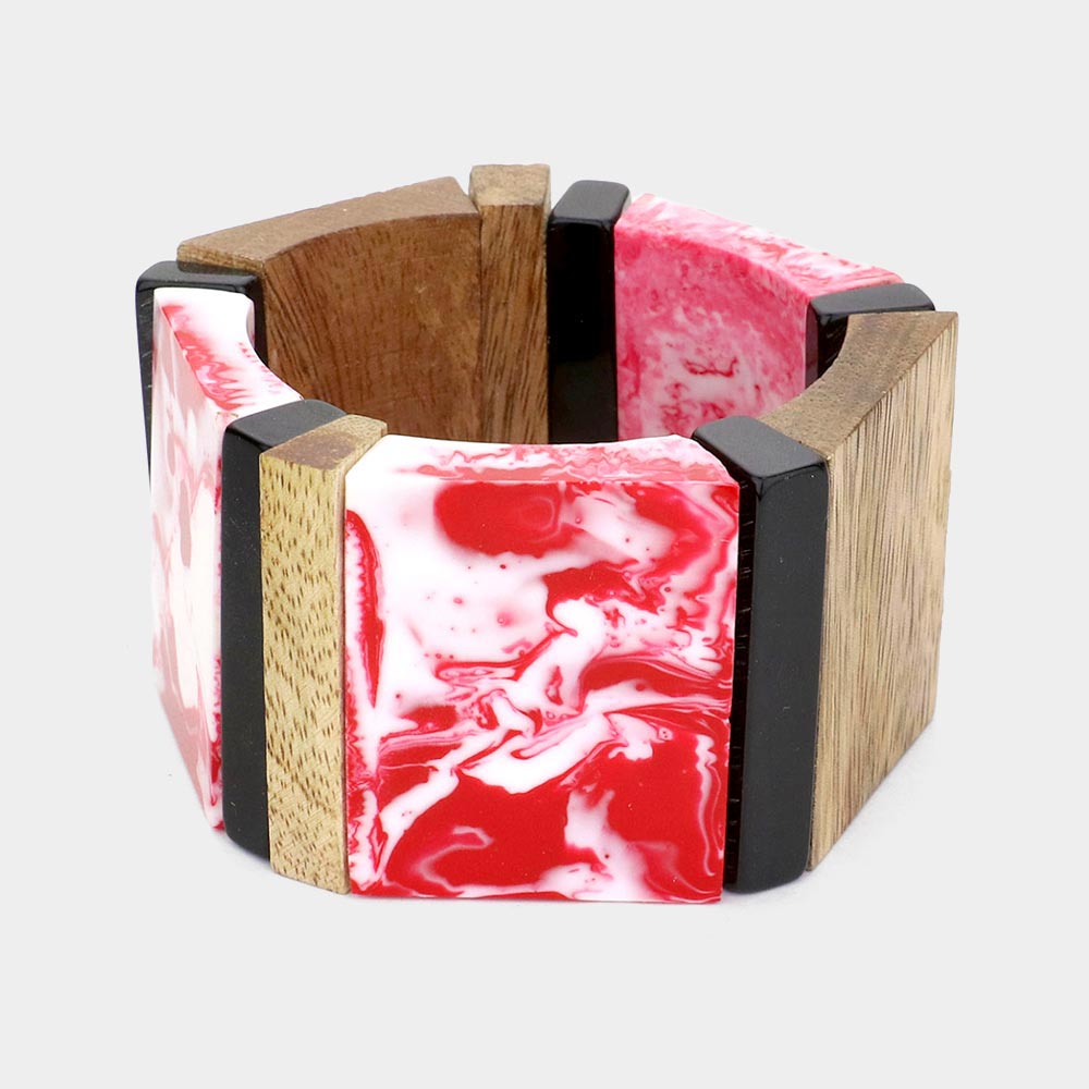 Worn Metal Cross Accented Celluloid Acetate Stretch Bracelet