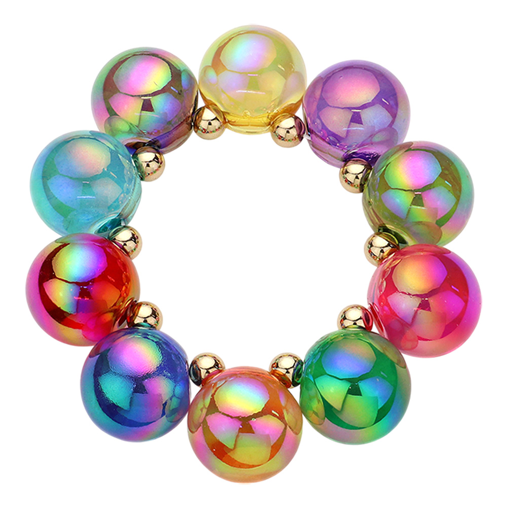 • Add a pop of playful shimmer with this iridescent beaded bracelet. Featuring luminous color-shifting spheres with a glossy finish, it’s a bold statement accessory that catches the light beautifully for casual, party, or festival wear.