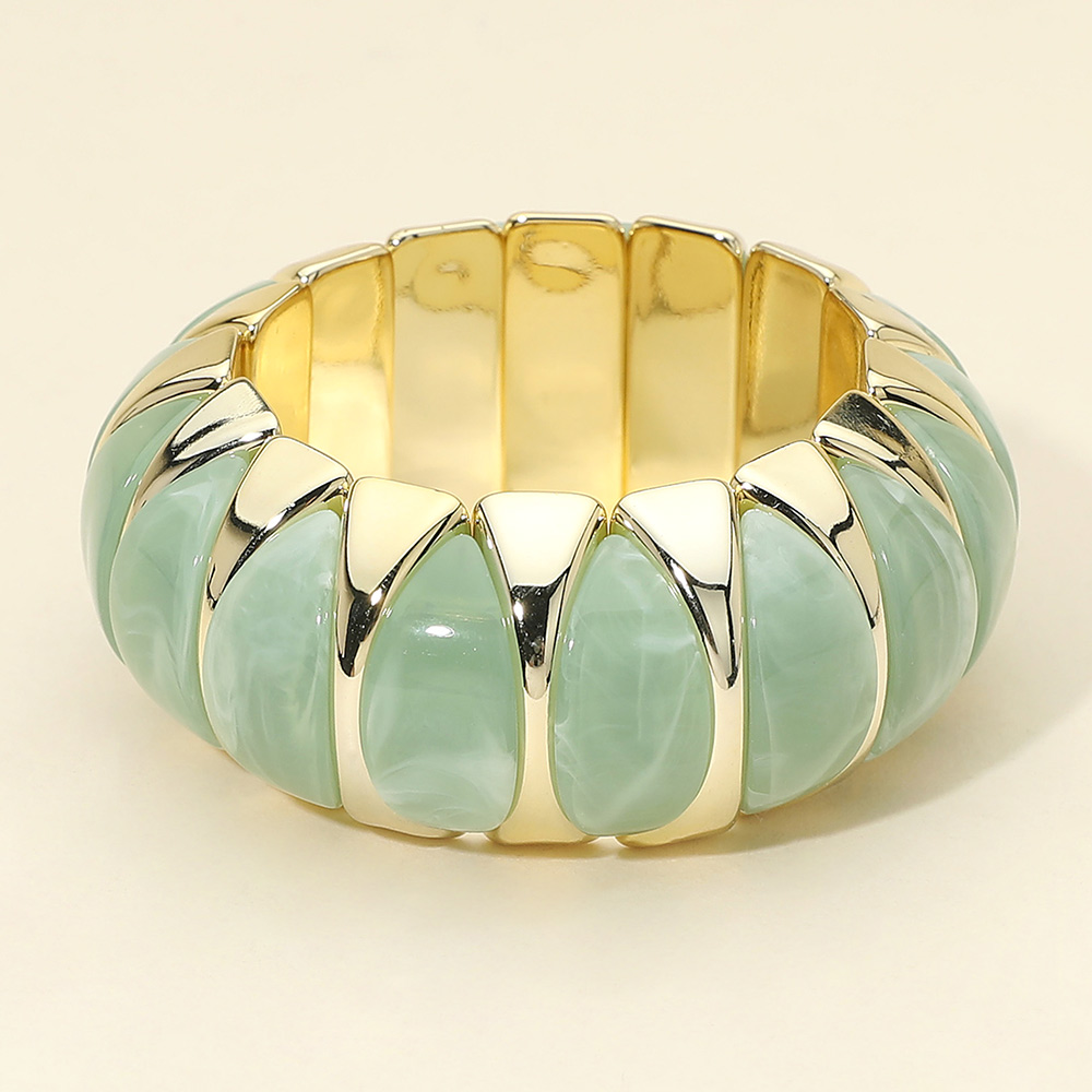 Details • Size : 1.1" H • Stretchable • Eye-catching chunky stretch bracelet designed to elevate everyday and statement looks. Features a smooth, sculpted link design with a comfortable slip-on fit for easy wear. Perfect for layering or wearing solo, this bracelet adds modern flair to casual, work, or dressy outfits and is ideal for boutique accessory collections. • Lead and Nickel Compliant