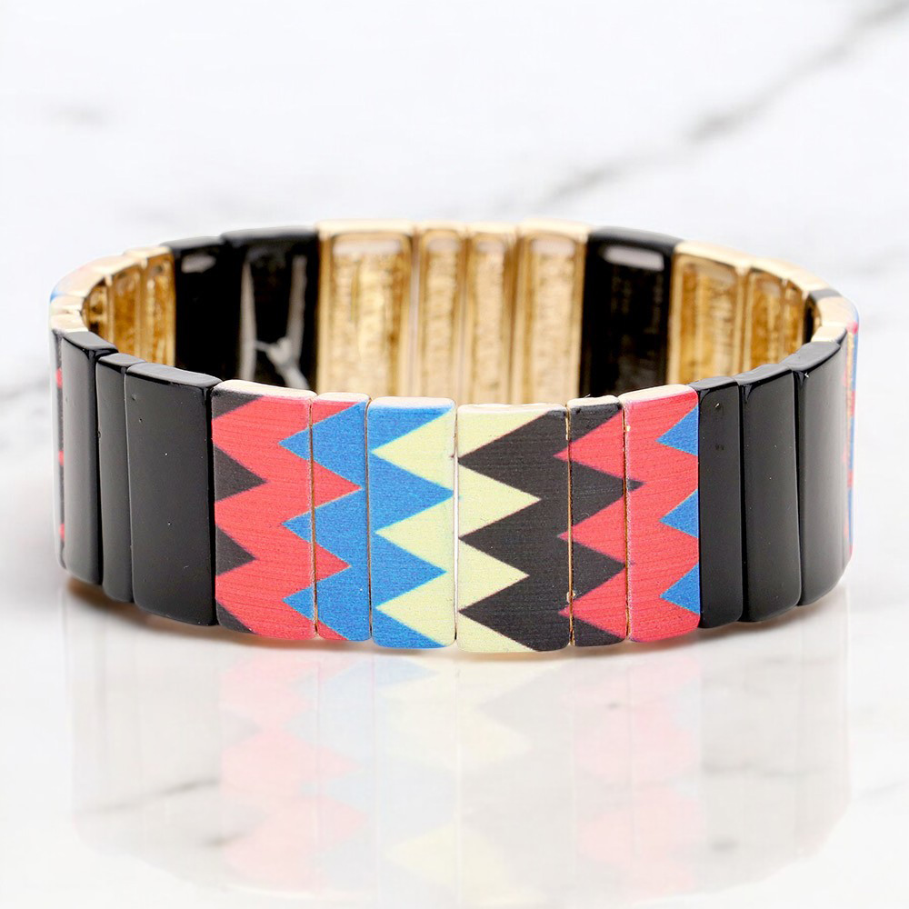 Stainless Steel Enamel Inlay Hinged Bangle Bracelet