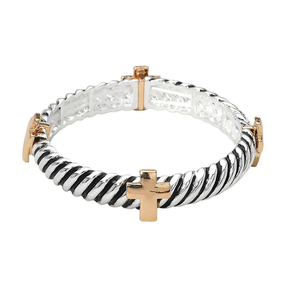 Cross Accent Textured Metal Stretch Bracelet Cross Accent Textured Metal Stretch Bracelet