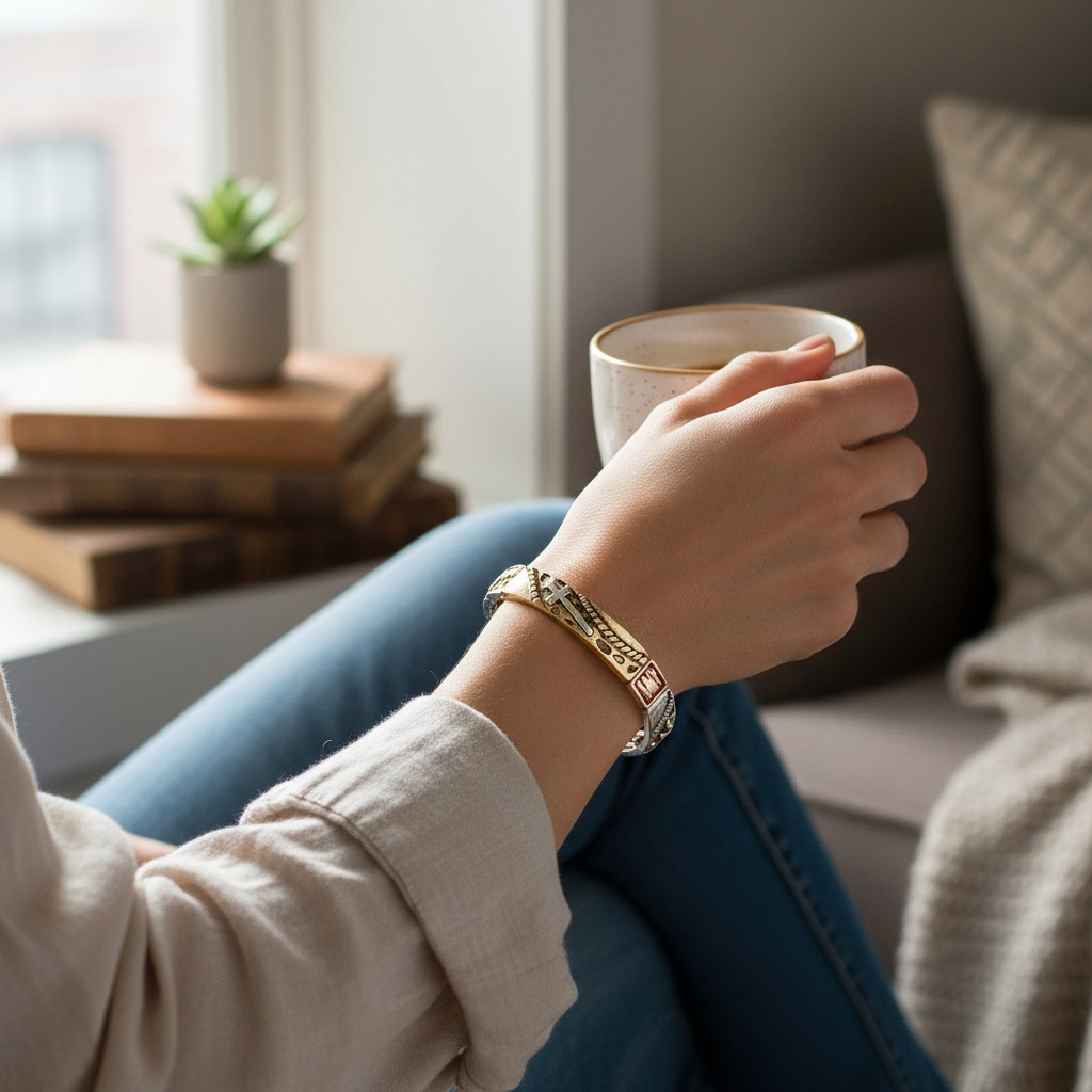 SERENITY PRAYER Religious Message Engraved Triple Open Ichthys Charms Bangle Bracelet