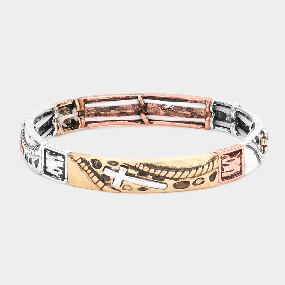 Funky Lacquered Triangle Cross Stretch Bracelet