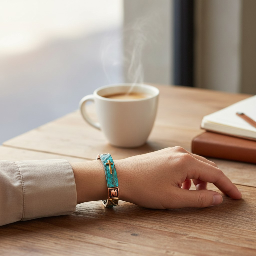 Turquoise Stone Center Vintage Metal Cross Dangle Earrings