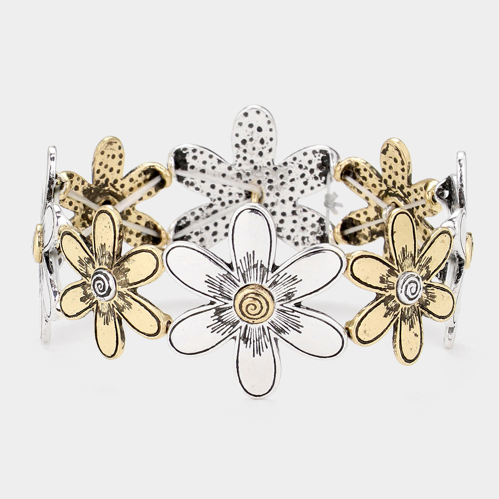 Teardrop Marquise Stone Leaf Cluster Stretch Evening Bracelet