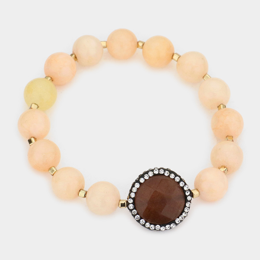 Double sided crystal trim natural stone beaded strand stretch bracelet