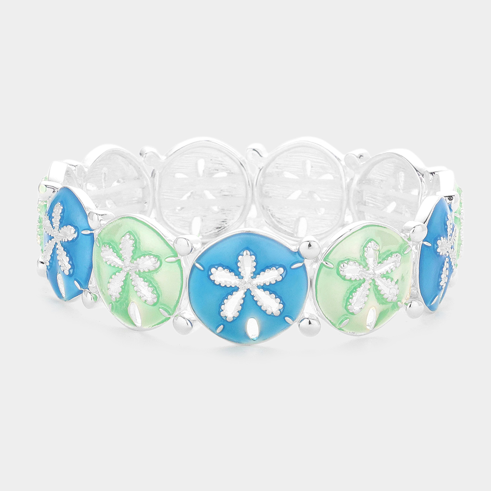 Two Tone Sand Dollar Pointed Stone Paved Sea Shell Dangle Earrings