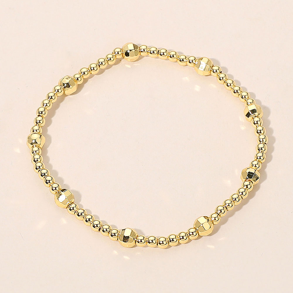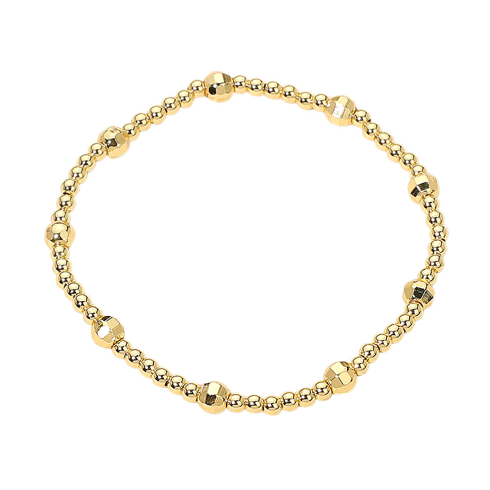 Faceted Beads Accent Stainless Steel Ball Beaded Stretch Bracelet