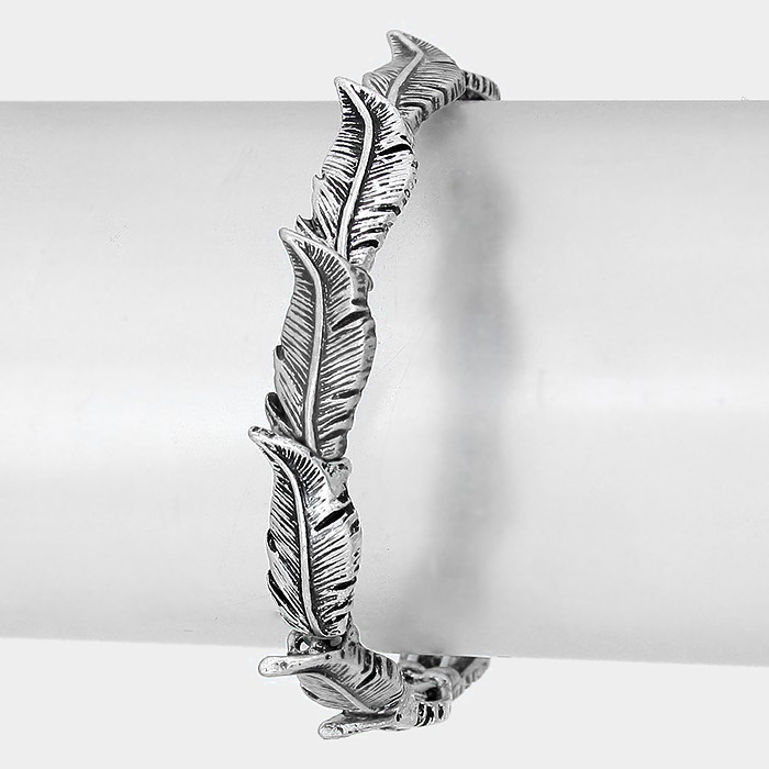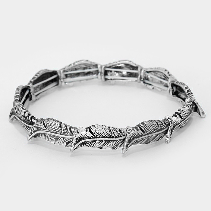 Vintage Metal Feather Stretch Bracelet