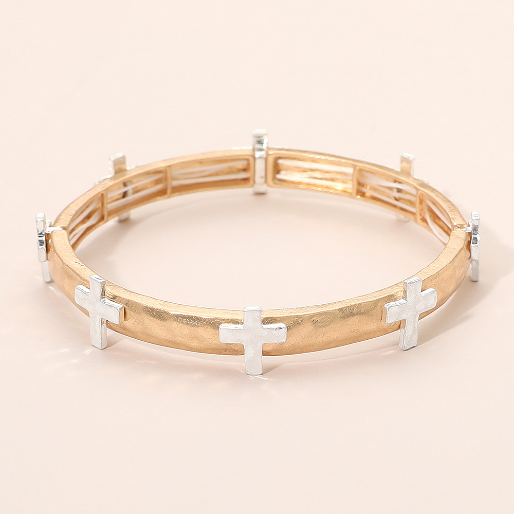 Hammered Brushed Metal Cross Accent Stretch Bracelet Hammered Brushed Metal Cross Accent Stretch Bracelet Hammered Brushed Metal Cross Accent Stretch Bracelet