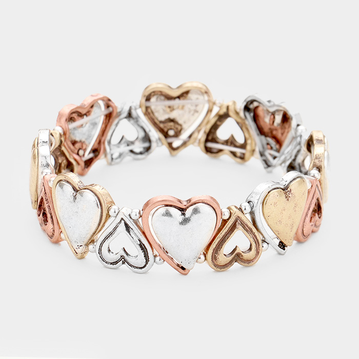 Chunky Wooden Heart Charm Station Layered Chain Necklace