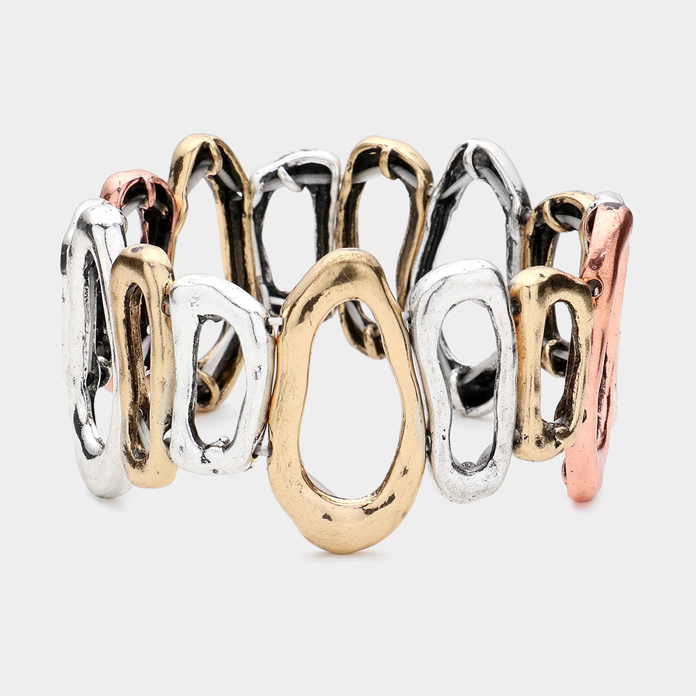 Irregular Circle Burnished Metal Stretch Bracelet